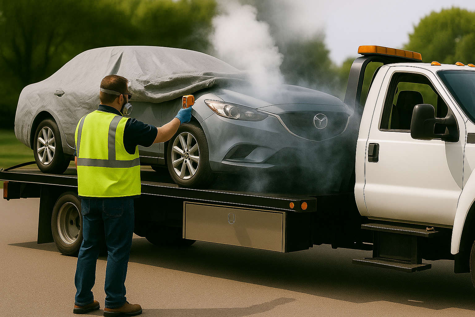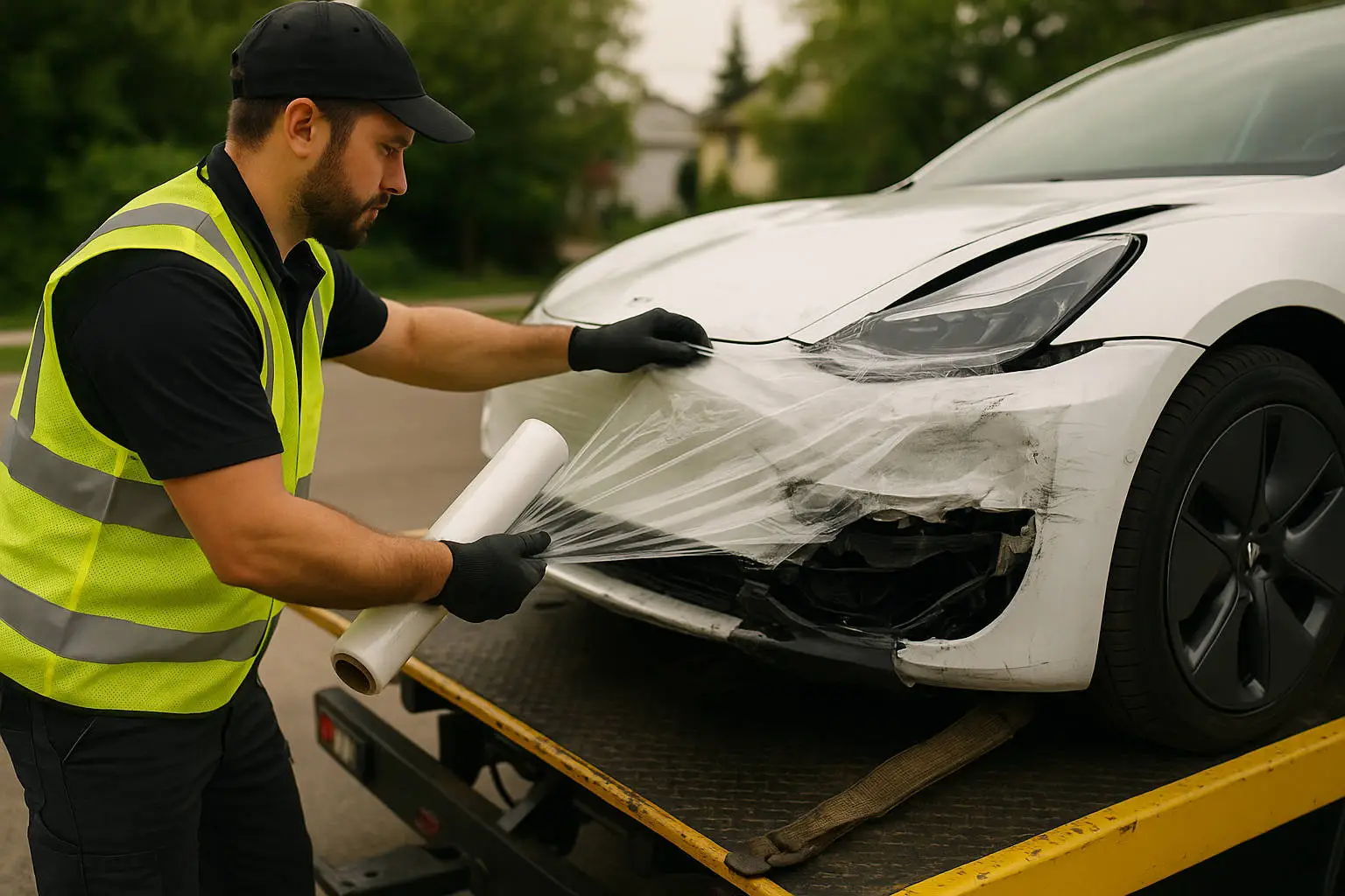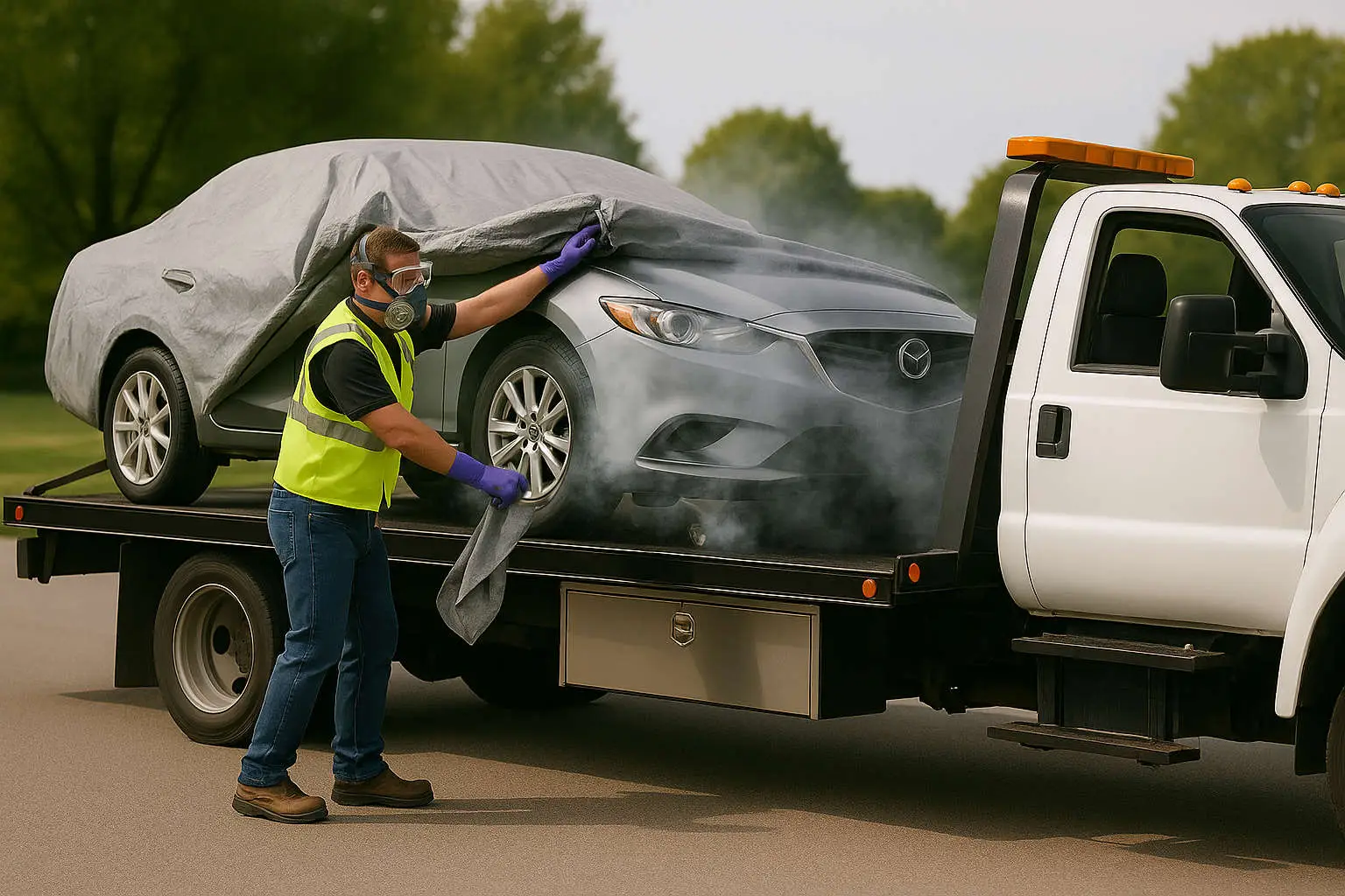 gases before proceeding.Best Practices for Tarping• Material Selection:• Waterproof collision wraps for weather protection.• Clear plastic for visibility and hazard identification.• Choose tarps or protective coverings designed for the specific scenario: • Fire-resistant blankets for thermal risk.